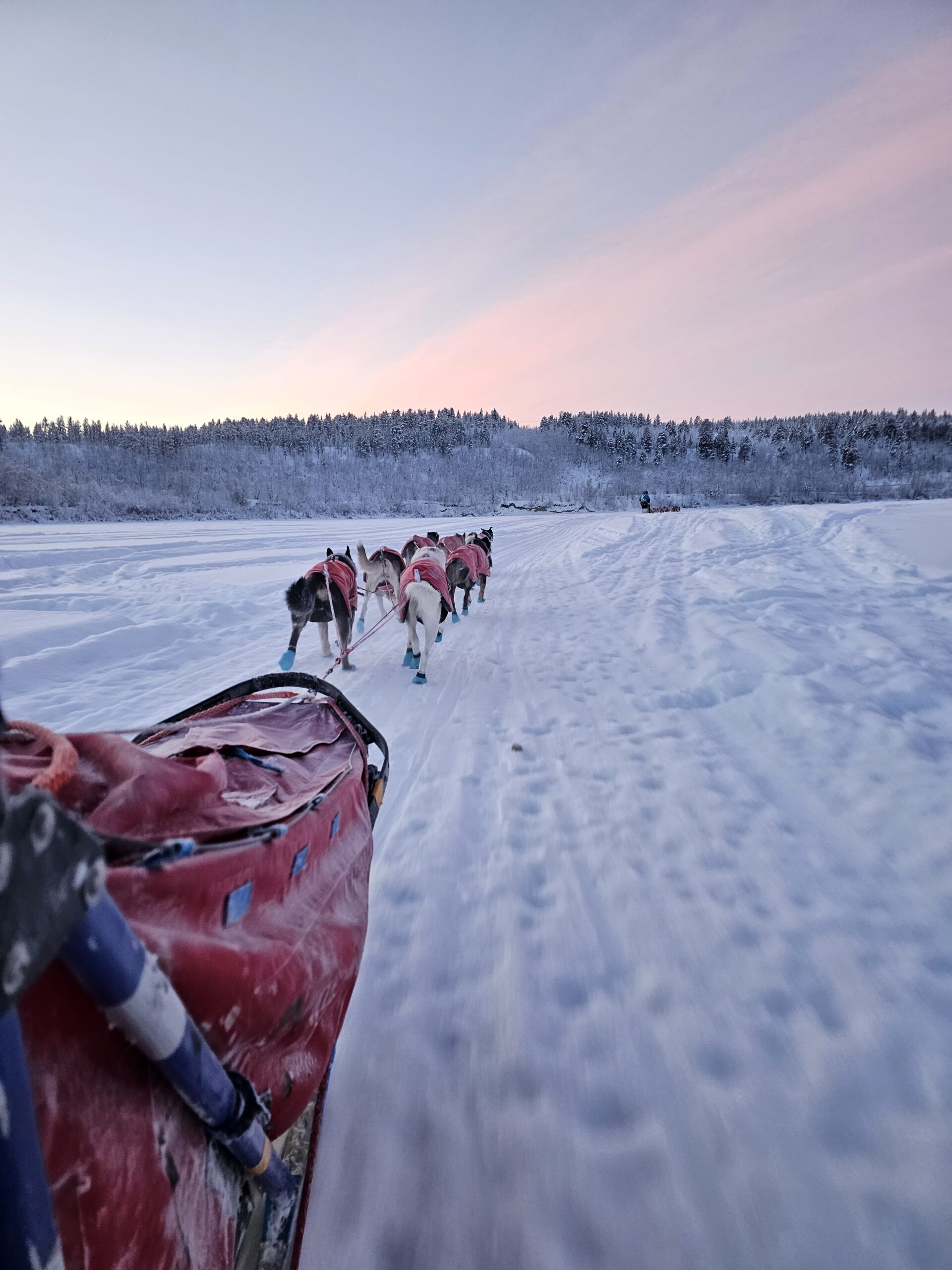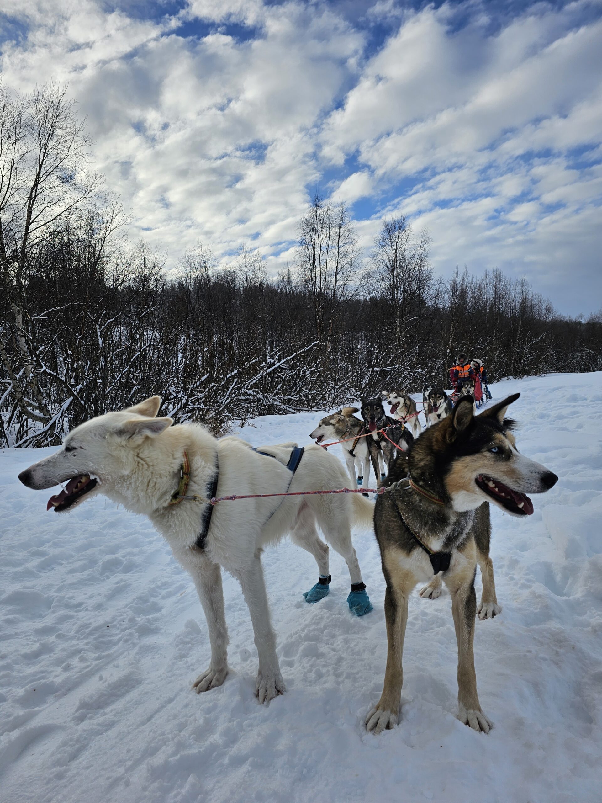 Våre hundekjørere har mange års erfaring, både innen konkurranse, turisme og turkjøring. Hos oss får du mulighet til å kjøre med formel1 hundene innen hundesporten. Huskyene er topptrente idrettsutøver som deltar på mange løp i løp av vintersesongen med den største konkurransen som er Finnmarksløpets 1200km distanse. Hundene elsker å trekke slede og er avlet opp til oppgaven. Du vil få en overveldende følelse av at hundene virkelig ser frem til å komme seg ut i sporet. Du blir med inn i hundegården og sele opp hunden. De settes i spann på 6-8 hunder også bærer det av gårde ut i naturen. Turen kan ha flere løyper alt ettersom hvordan vær, føre og hvor kaldt det er. Tommelfingerregelen er at om det er krevende forhold så vil hundenes ved og vel gå foran lengden på turen. Vår erfarende hundefører vil gi en god innføring i sikkerhet og hva man kan forvente seg på en slik tur. Er man litt tilbakeholden og litt usikker på om dette er noe for deg så er det også mulig å bli med i sleden først, for så å teste litt når man kommer i en fin løpsrytme.
